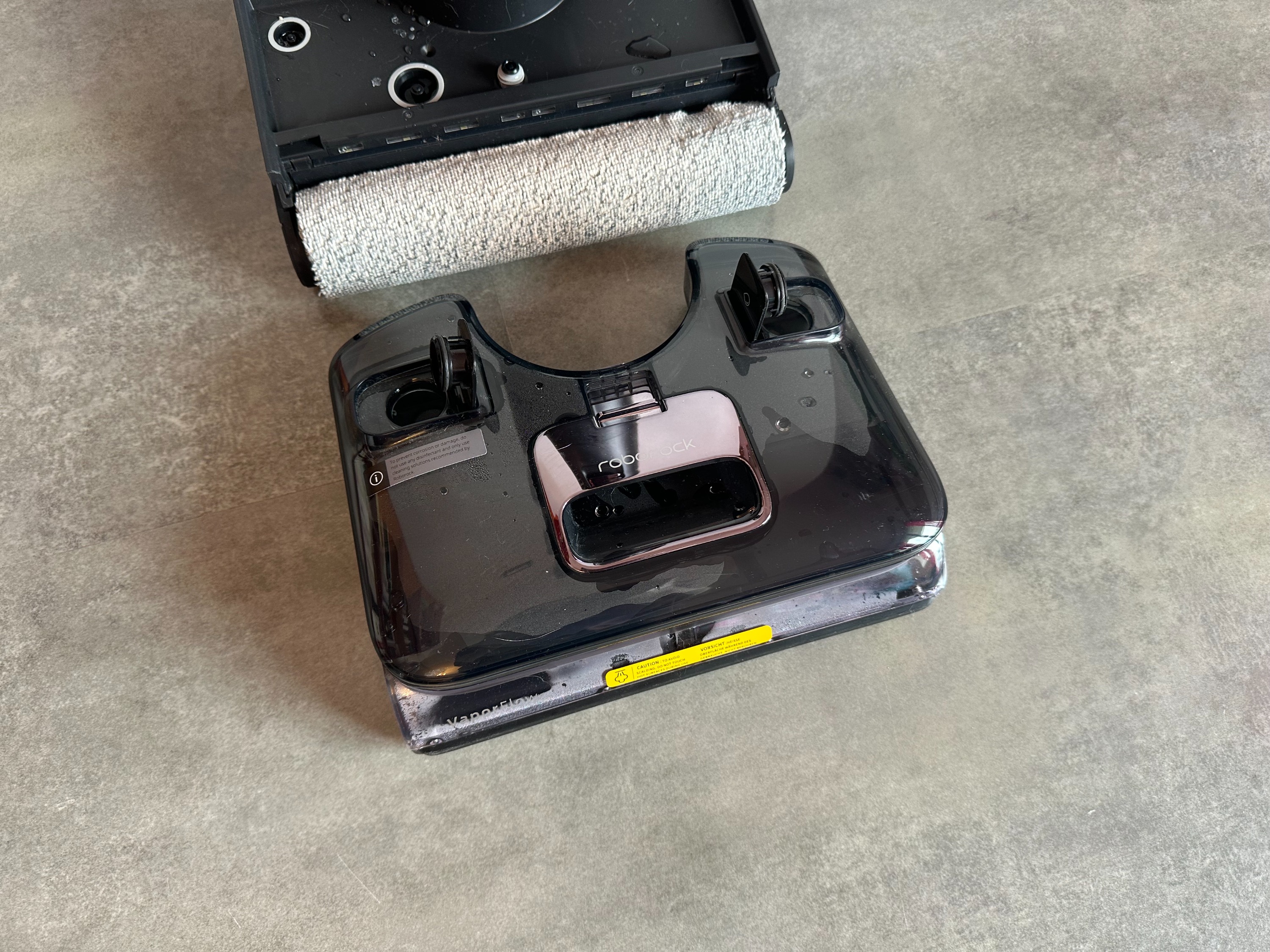 Lorsqu’il faut nettoyer le rouleau, on y accède très facilement en soulevant le réservoir d’eau, puis il se détache grâce à un loquet sur le côté droit. L’ensemble est vraiment bien nettoyé. Lors de nos tests d’appareils concurrents, il arrive souvent que nous retrouvions des poils d’animaux et de la poussière en paquets sous le capot et dans le conduit (entre la brosse et le collecteur), ce qui n’est quasiment jamais arrivé ici. Grâce au système d’auto-nettoyage performant du Roborock F25 Ultra, l’entretien est grandement réduit. Notez qu'un onglet Entretien, sur l'app, permet de suivre l’état du filtre et du rouleau pour savoir quand les changer.